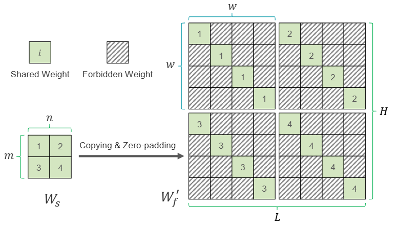 图5. 通过复制和零填充 得到等价的权重矩阵 的示意图