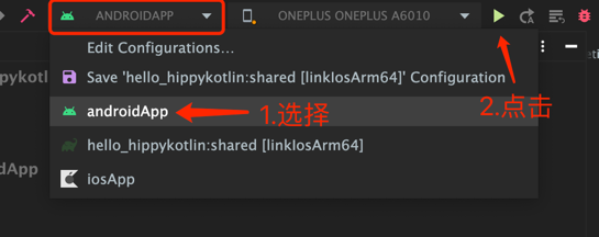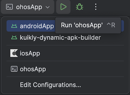 可以选择在 DevEco-Studio 内运行 或 Android Studio 内运行ohosApp