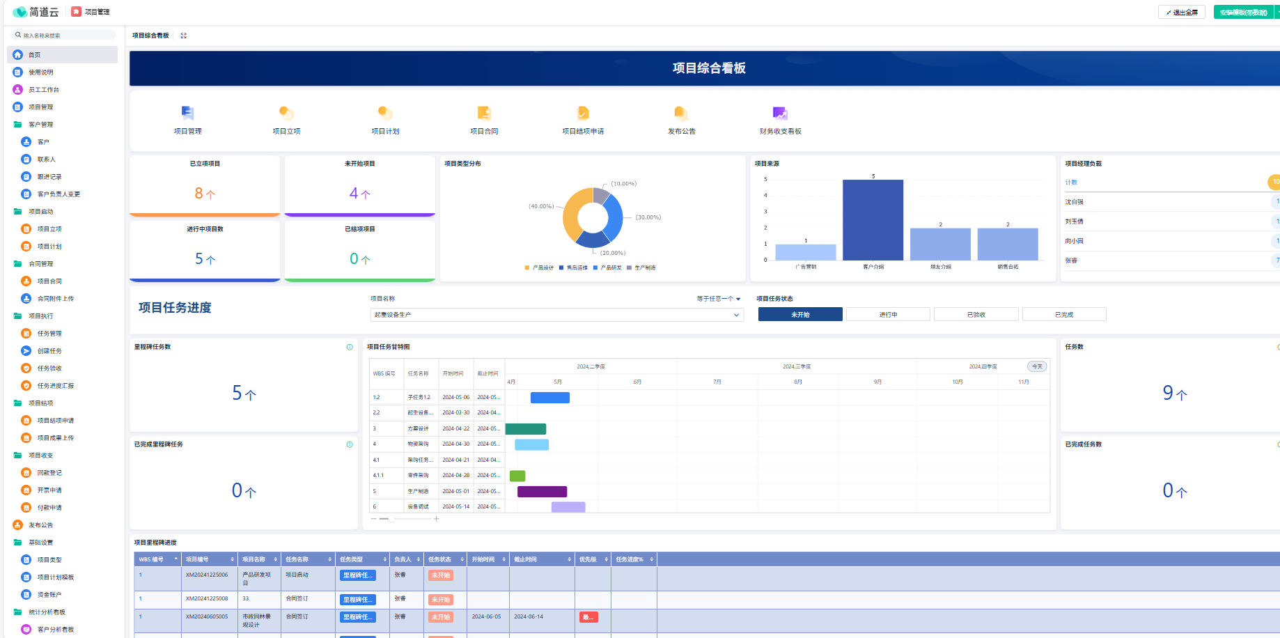 注:本文示例所用方案模板:简道云项目管理系统,给大家示例的是一些通用的功能和模块,都是支持自定义修改的,你可以根据自己的需求修改里面的功能。