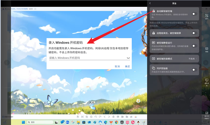 【被控端防窥模式】即便连接成功,想要开启隐私保护也并非易事。UU隐私权限设置集中于连接后的“安全”菜单中,进入“被控端防窥模式”远程控制时设置为仅显示黑屏,隐藏被控端屏幕内容