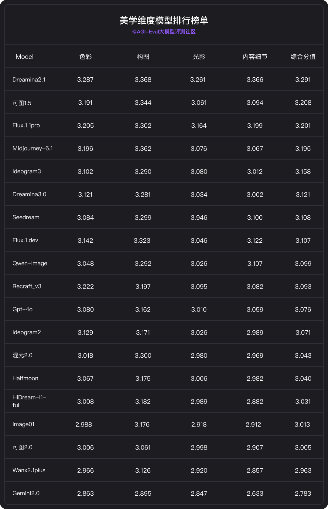 对比评估:在美学方面,Seedream 4.0 较 Dreamina 3.0 和 Dreamina 2.1 下降,主要是色彩和光影方面的问题,色彩方面配色不平衡,饱和度与明度失衡;光影方面曝光控制不好,光源问题加重,对比度和锐化度的失衡加重,整体导致不自然、不平衡。但在人像构图上对动态感、瞬间感的把握有所提升。