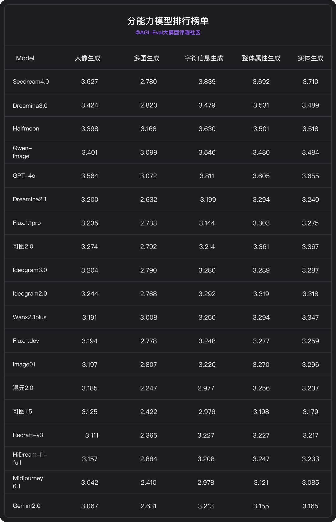综合分排名虽然给出了直观的排序,但它无法展示各模型在能力上的具体差异与取舍。为了更全面地展现各模型的具体能力分布与特长,接下来,我们将继续为大家解读细分榜单。