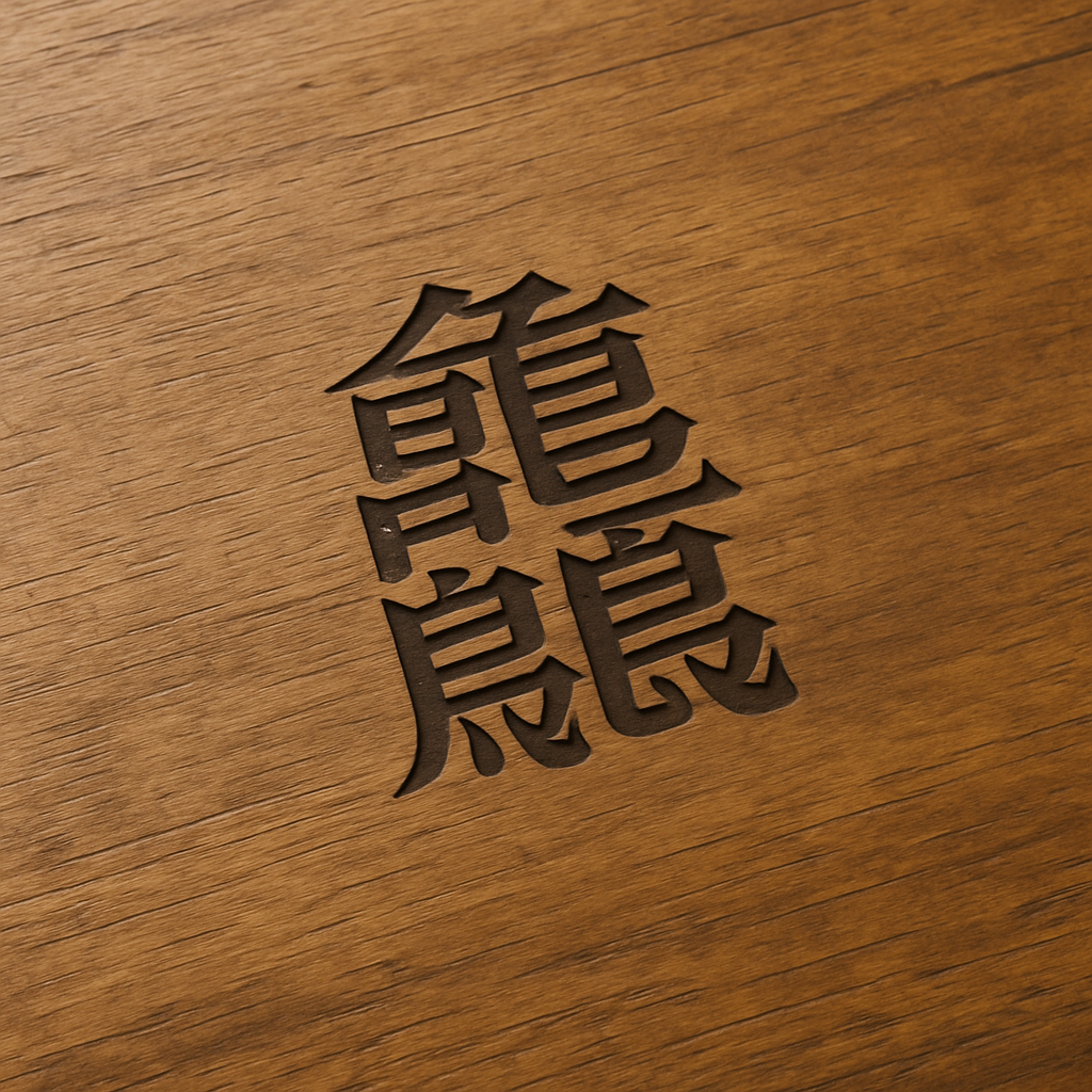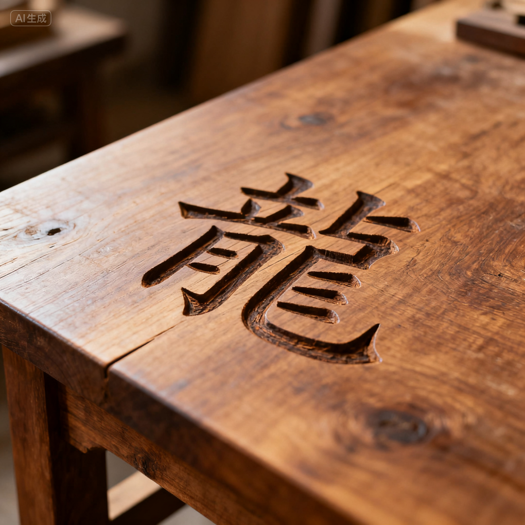 prompt2:一个木桌上,雕刻着汉字“龘”