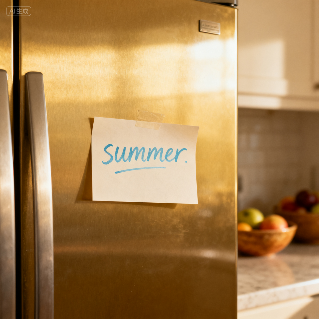 prompt1:冰箱门上贴着一张便签,上面写着 “summer”