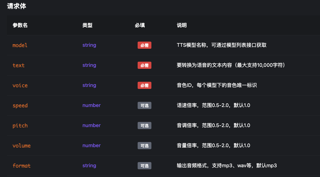 对于model和voice参数可以因为内容较多,可以前往API文档查看。