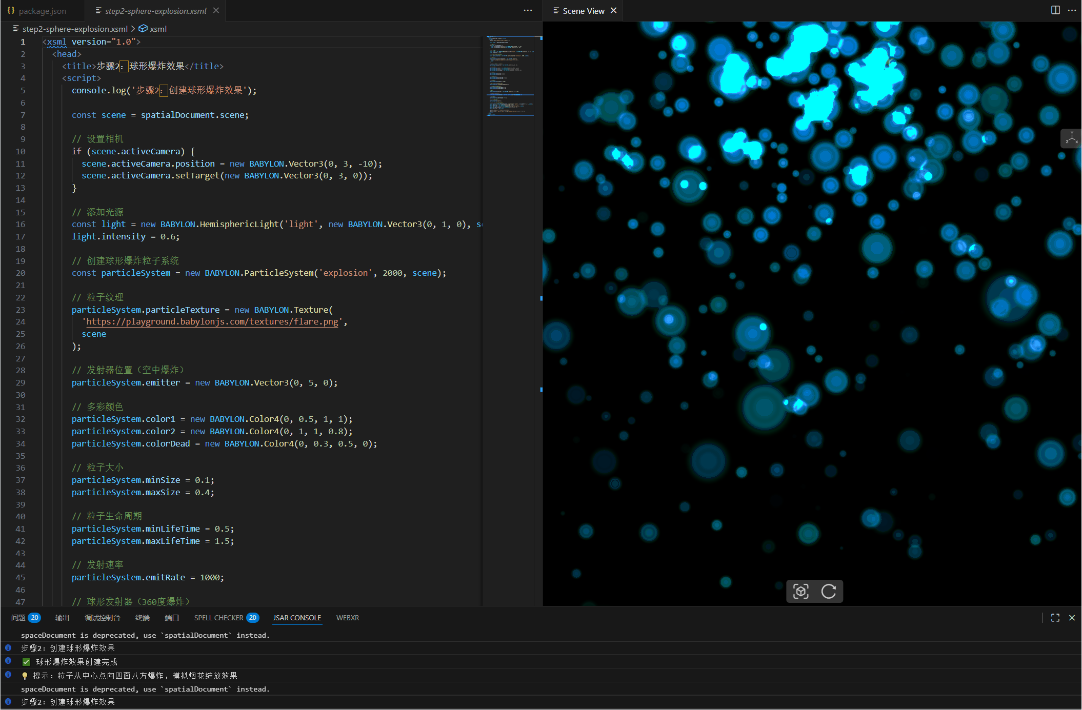 创建文件 step2-sphere-explosion.xsml: