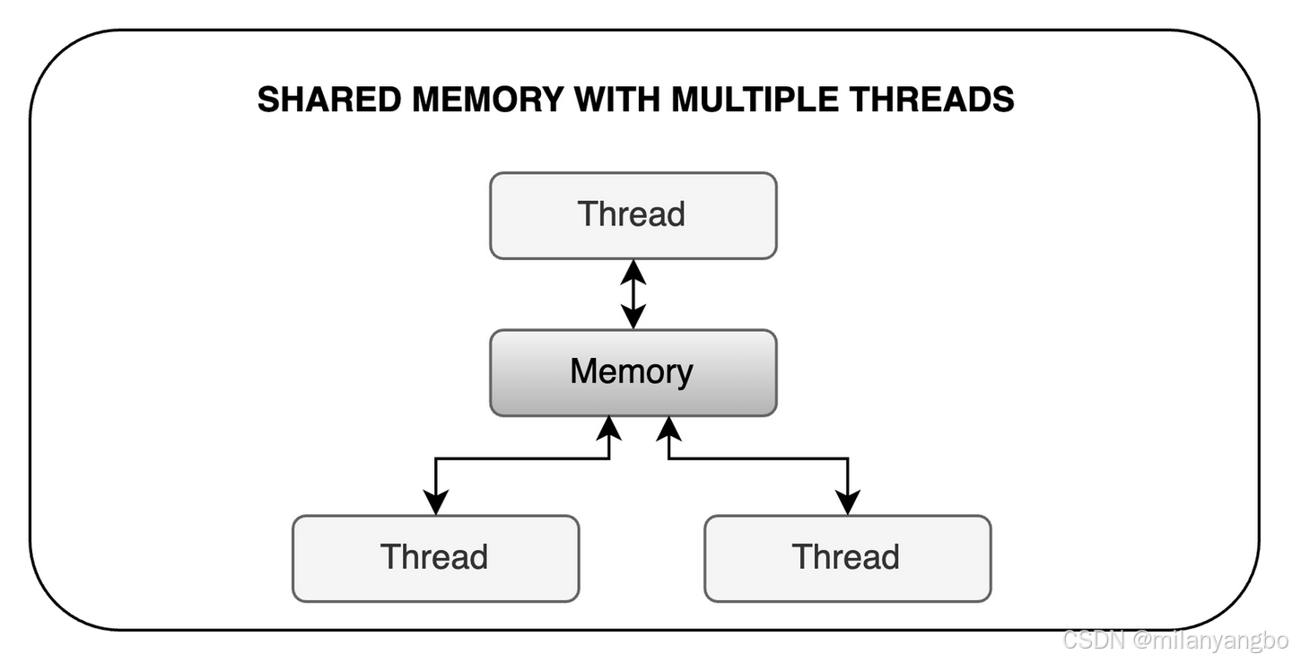 在共享内存模型(Show Memory Model)中,多个线程能够并行访问同一片内存区域,这种设计提高了线程间通信的效率。线程可以直接对共享内存进行读写操作,避免了复杂的消息传递和数据复制,从而实现了高效的数据共享。然而,这种高效性也带来了挑战,尤其是竞态条件的问题。
