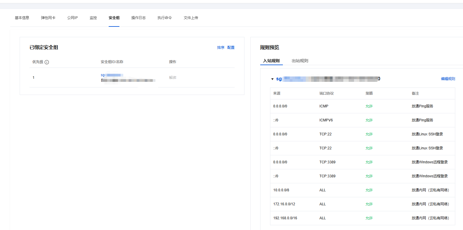 1、检查CVM绑定的安全组入站规则,是否放行了客户端IP,以及是否放行了服务端口。