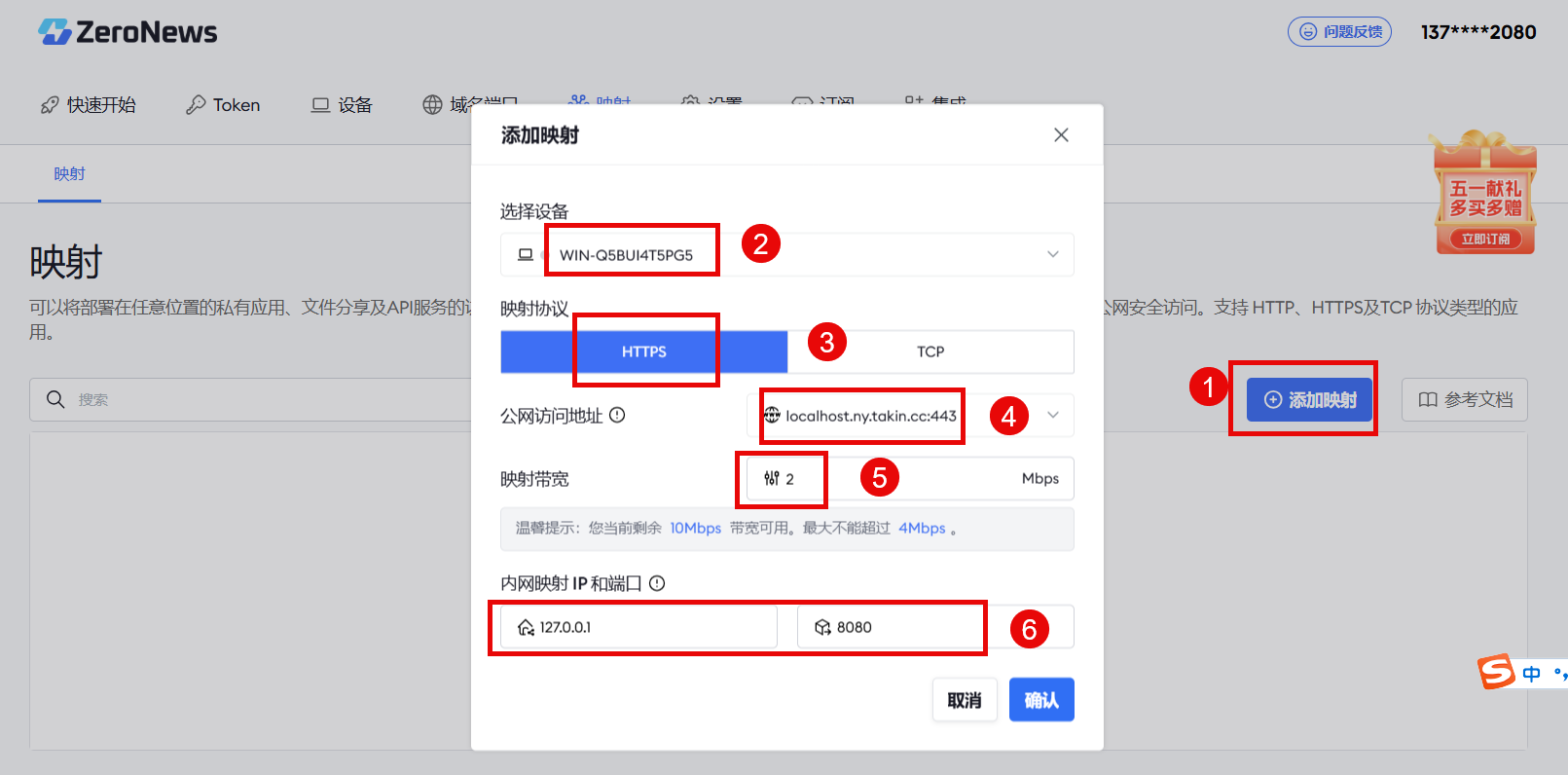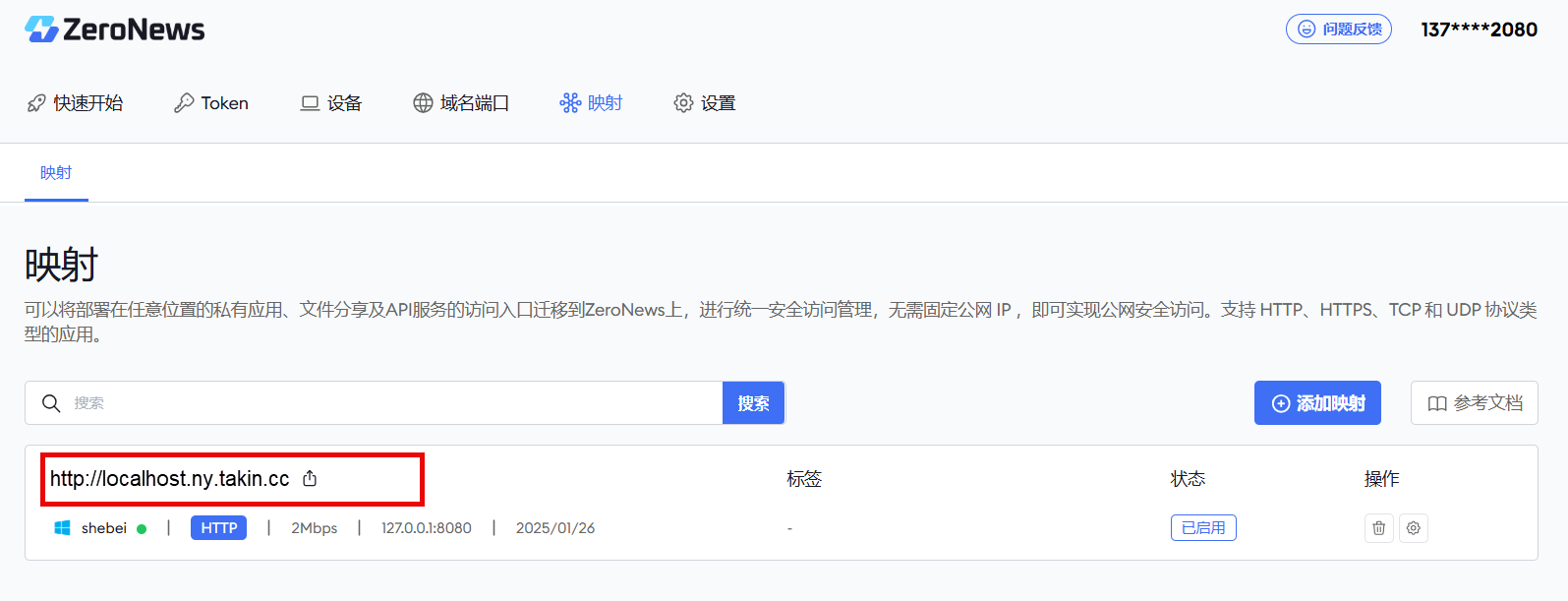 b. 公网访问地址:选择 localhost 域名,如 localhost.ny.takin.cc