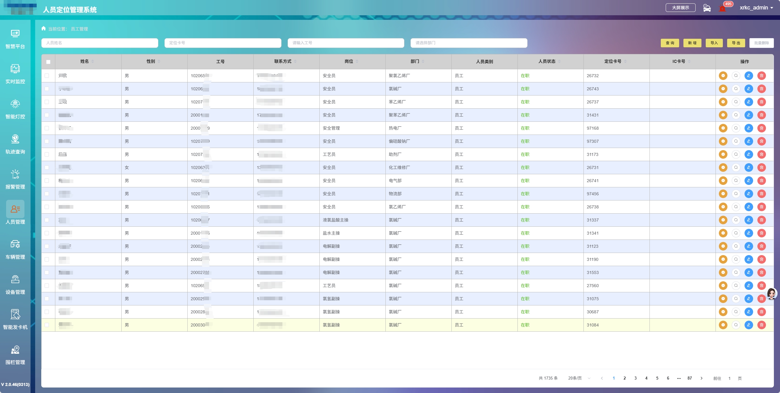 矿区作业人员数量多,工种涵盖采矿工、运输司机、设备维修工等多种类型。管理人员难以精准掌握人员的分布情况与实际工作状态,导致任务分配缺乏合理性,人员调度混乱,进而影响整体生产进度。