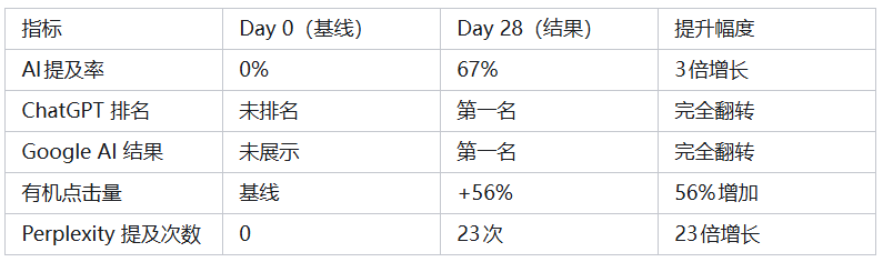1.2 惊人结果:28天内实现AI可见性的戏剧性飞跃