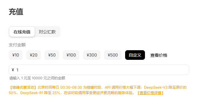 deepseek-chat | - 缓存命中:0.25 元(5 折) - 缓存未命中:1 元(5 折) | 4 元(5 折) |