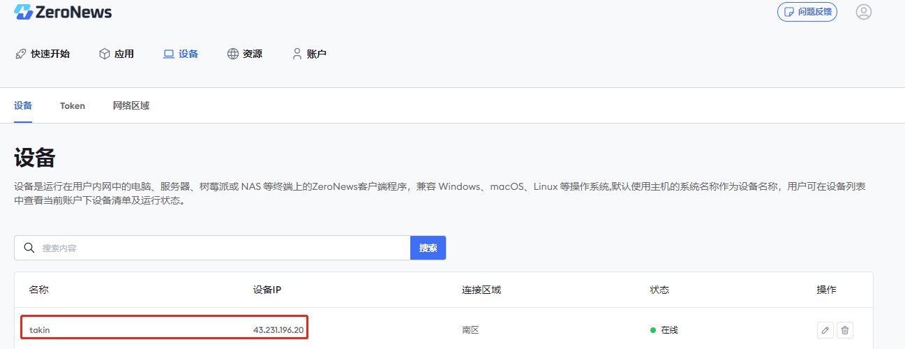 ZeroNews 容器启动成功后,在 ZeroNews 平台上能查看已上线的 ZeroNews 容器