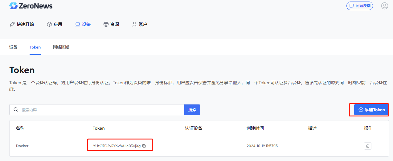 3. 通过以下命令启动 ZeroNews 容器,将 token 及 网络区域ID 粘贴到命令最后,以空格分隔