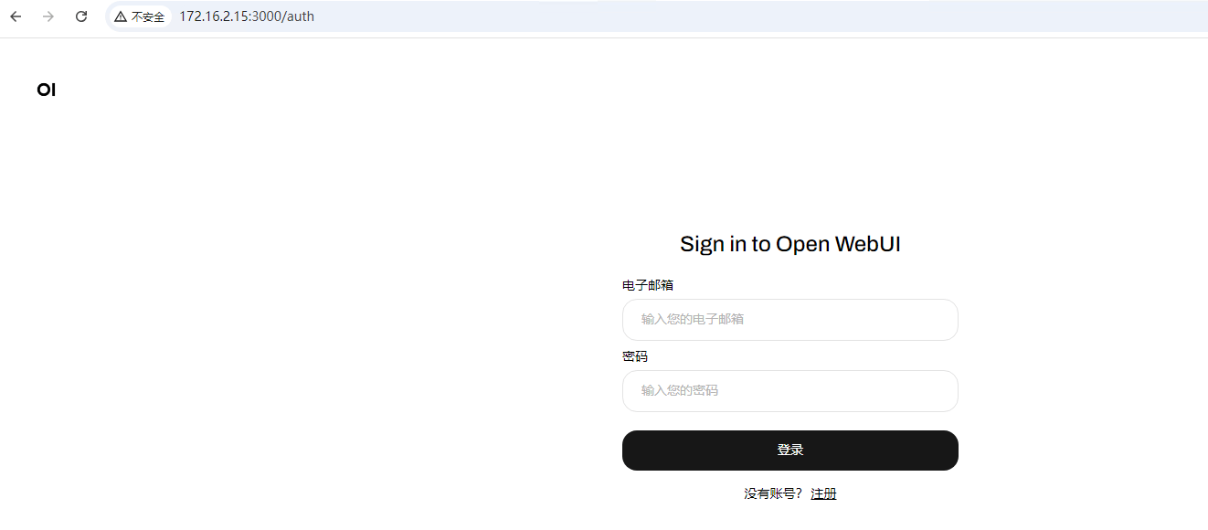 Open WebUI 容器启动完成后,就可以在浏览器中输入 http://{主机IP}:3000 访问 Open WebUI