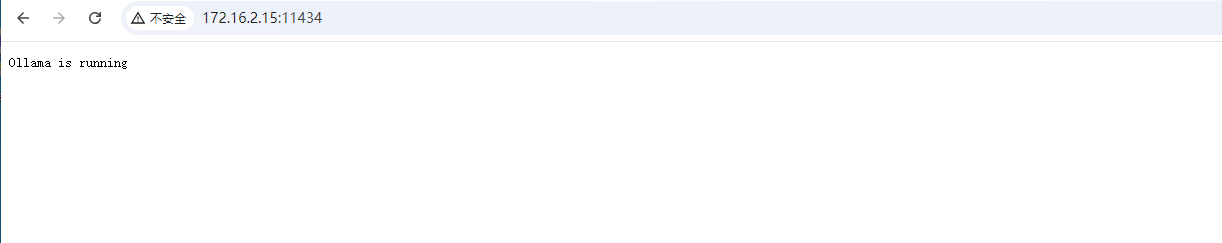 在浏览器中,输入 http://{主机ip}:11434, 检查 ollama 是否正常运行, 显示 “Ollama is running”, 表示ollama 运行正常