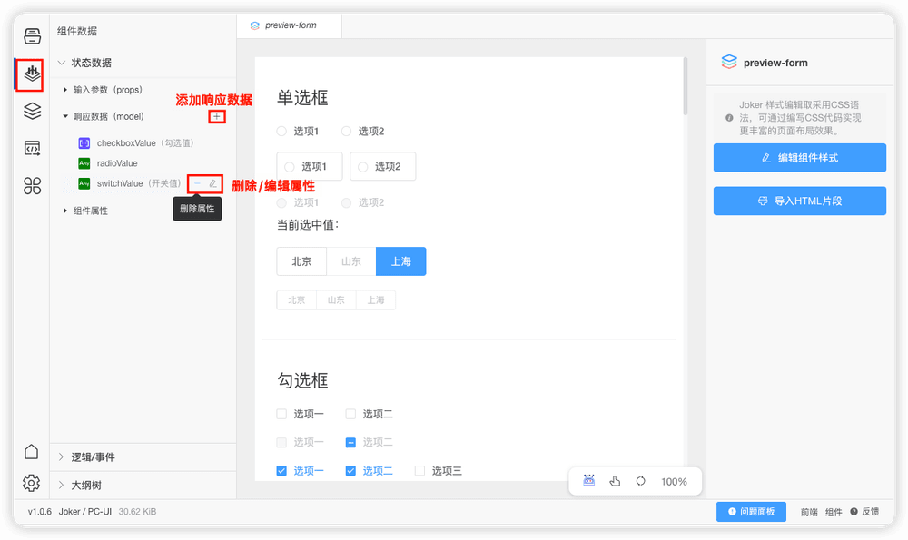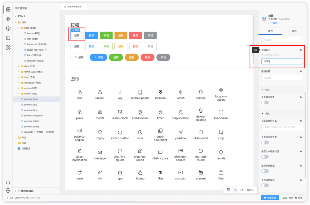 内部属性设计面板中的要素和上述内容基本一致,可参考上述功能描述。