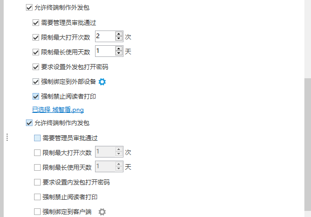 适用场景:企业需要对外发文件设置"查看次数限制""设备绑定""禁止打印"等高级规则时(如研发代码、客户数据库)。