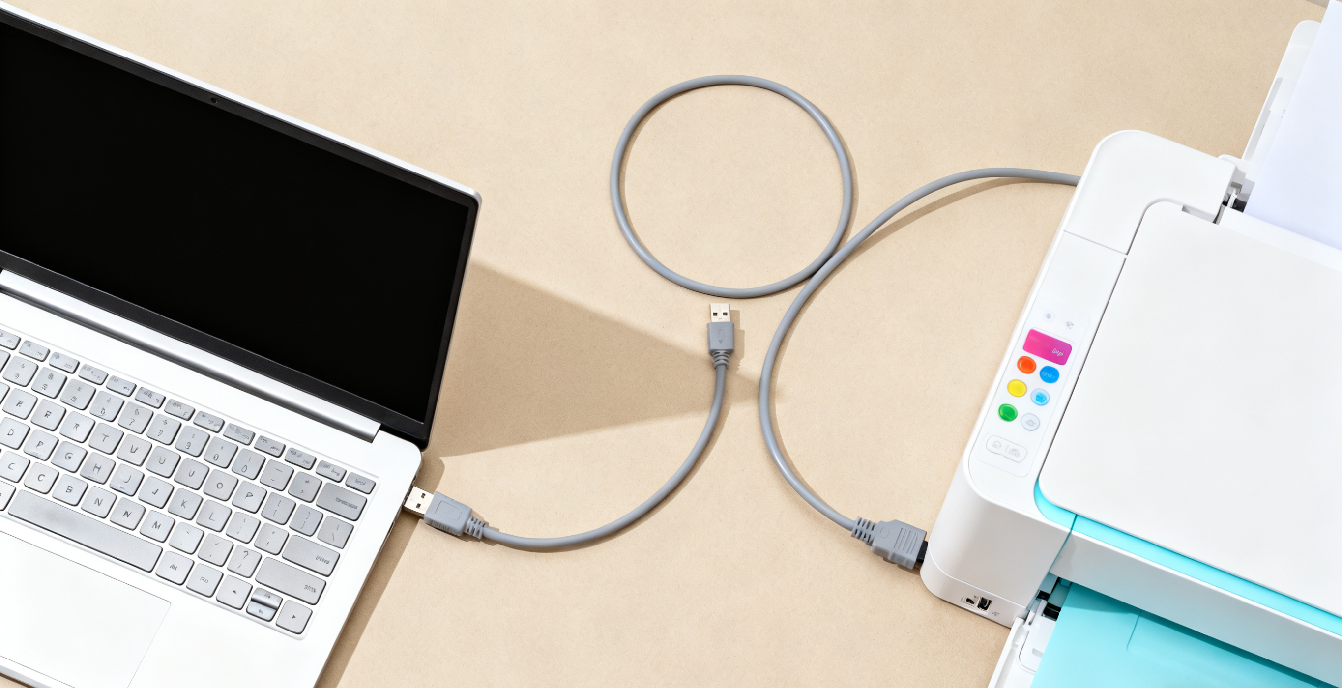 笔记本与打印机处于同一网络(无线/蓝牙连接必备),USB 连接需准备原装数据线(macOS 若为Type-C接口,需搭配USB-C转接头);
