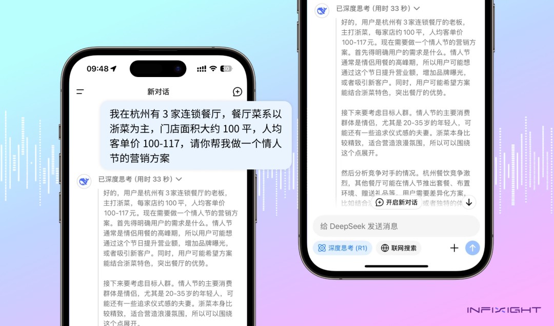 很快,它就输出了一个相当完整的情人节营销方案,包括情人节主题、营业额目标、产品策略、套餐定价、优惠活动以及社媒传播话题与节点等细节,看起来可执行性非常高。