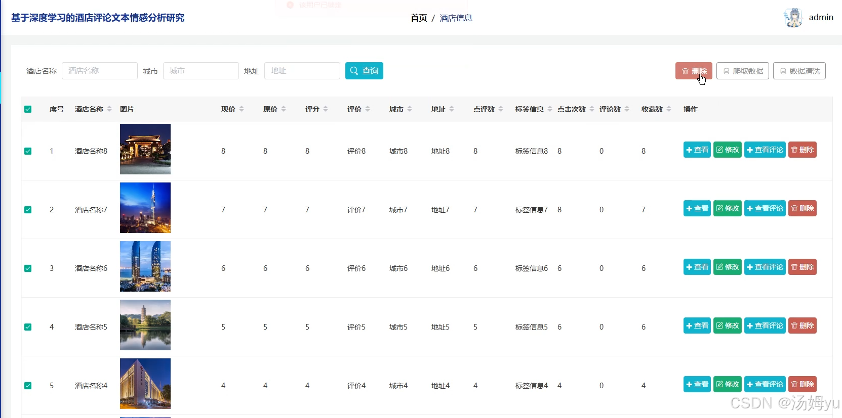 10、数据清洗:数据清洗是情感分析的重要环节,用于去除酒店评论中的噪声数据,如无关符号、重复内容等。通过清洗,确保输入模型的数据质量,从而提高情感分析的准确性和可靠性。