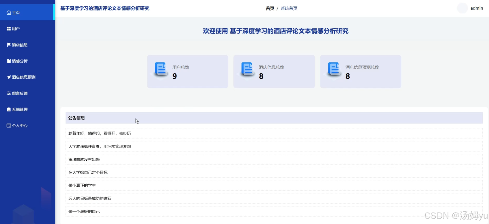 基于深度学习的酒店评论文本情感分析系统能够快速、准确地分析海量评论中的情感倾向,帮助他们及时了解消费者的需求和不满之处。通过精准的情感分析,酒店可以针对性地改进服务质量,优化设施配置,从而提升客户满意度和忠诚度。对于消费者来说,该系统能够提供更加客观、全面的酒店评价信息。消费者在浏览评论时,往往会被大量信息所困扰,难以快速判断酒店的整体服务质量。而情感分析系统可以对评论进行情感分类和总结,帮助消费者更快地做出决策。从学术研究角度来看,本研究将深度学习技术应用于酒店评论情感分析领域,进一步丰富了自然语言处理和情感分析的研究内容。通过对酒店评论文本的深入挖掘,可以探索出更加有效的深度学习模型和算法优化方法,为相关领域的研究提供新的思路和参考。本研究不仅具有重要的理论价值,还能够为酒店行业和消费者带来实际的经济效益和社会效益