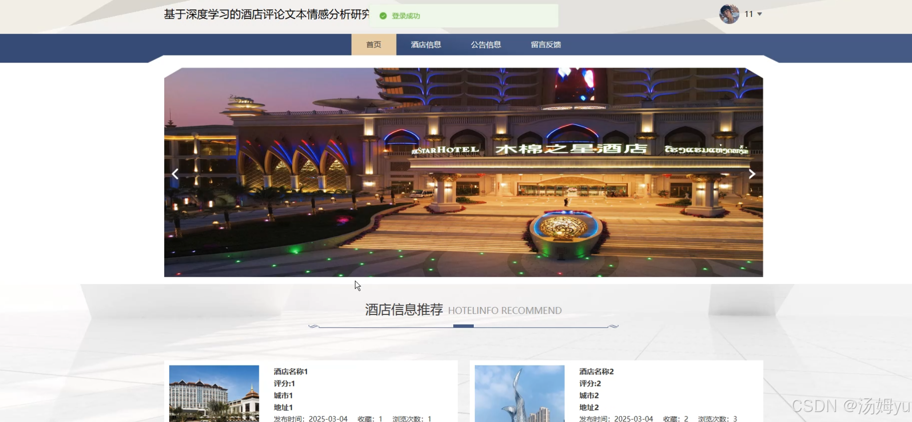 11、协同过滤:协同过滤是一种推荐系统技术,通过分析用户的历史行为和偏好,挖掘用户之间的相似性,为用户推荐可能感兴趣的酒店。在酒店评论情感分析系统中,协同过滤可用于结合情感分析结果,为用户精准推荐高满意度的酒店,提升用户体验和决策效率。