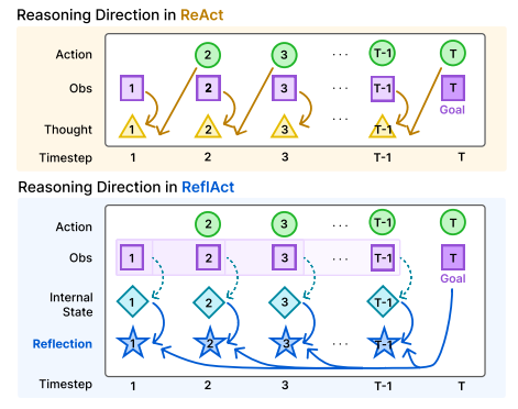 目前agent的基本运行模式大都为react,react的思路理解起来比较简单,就是对"plan-act-obs"链路进行持续迭代循环,直到完成任务退出。但是react确实也比较有效,这个模式兼顾了迭代相对可控和自主发挥,"先规划后执行"符合人类完成复杂任务的行动方式,"think-act-obs的抽象过程"将问题动态的交给agent进行决策,例如迭代中某一轮报错了,这个错误信息会记录到obs,自动进入下一轮的上下文,agent会据此进行对应的修复和调整,并再次重试(但一般也会加护栏防止一直重试)。也有一些和Reflection结合的工作,比如ReflAct[9],还有将plan和act拆开(plan and act[10])的方式,基本上也都是与react结合或部分优化,综合性能,成本,效果来看,目前react仍然是业界用的最多的范式。这种偏工程化的收敛并不是一种很好的迹象,可能需要其它范式来进行pk对比,才能带来更大的技术突破和落地推进。