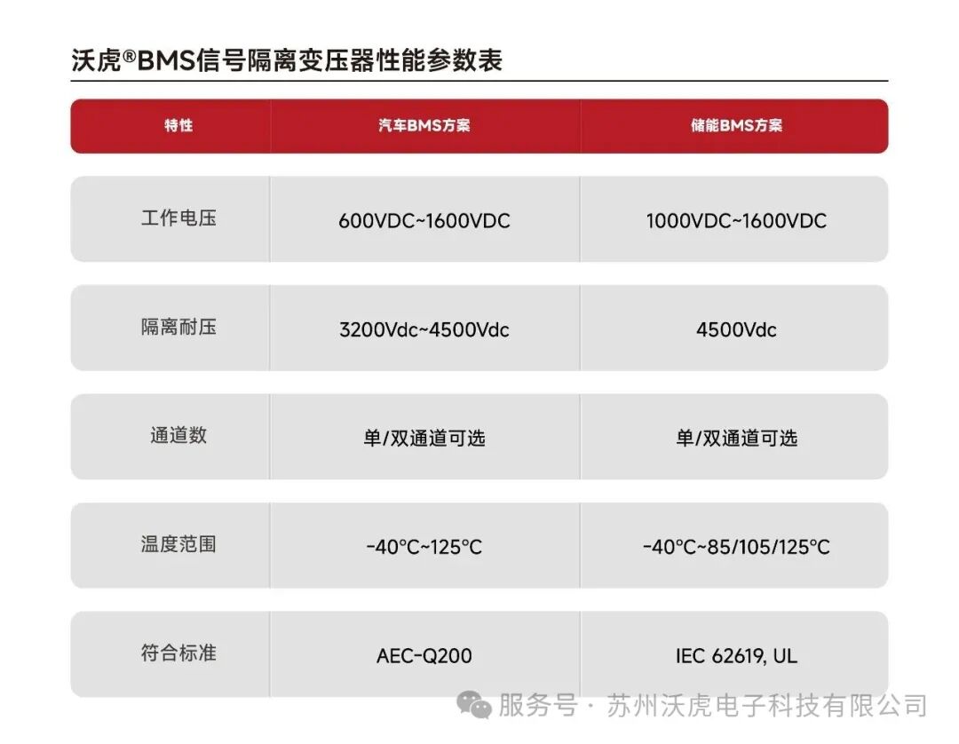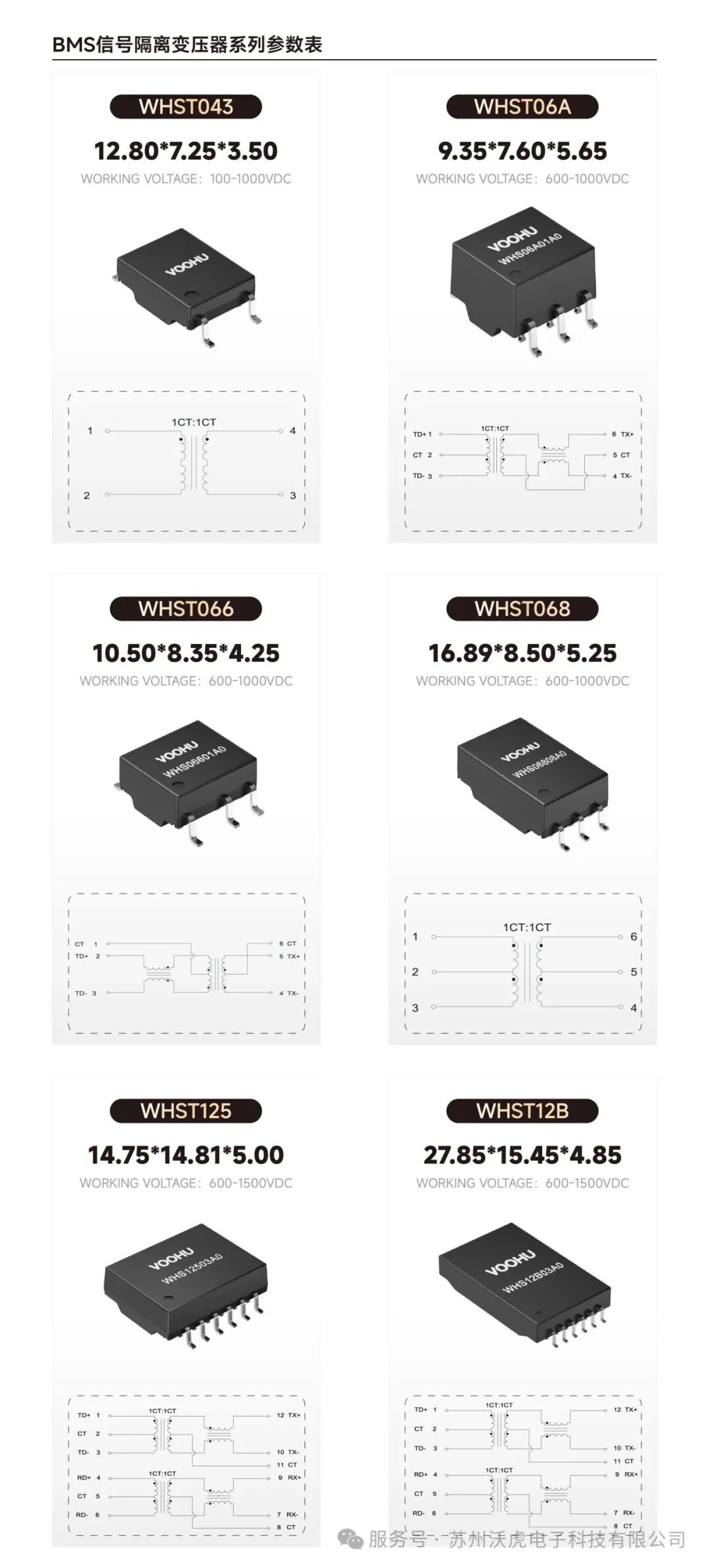 沃虎电子深耕磁性器件研发,推出BMS专用隔离通讯变压器系列,为储能与汽车领域提供: