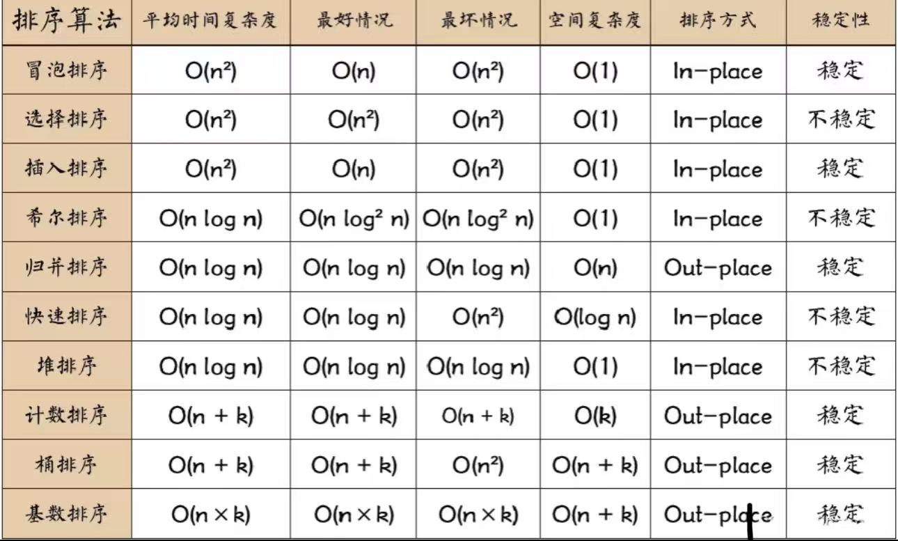 再在这里补充一个排序算法时间复杂度的表格,大家感兴趣的可以了解一下: