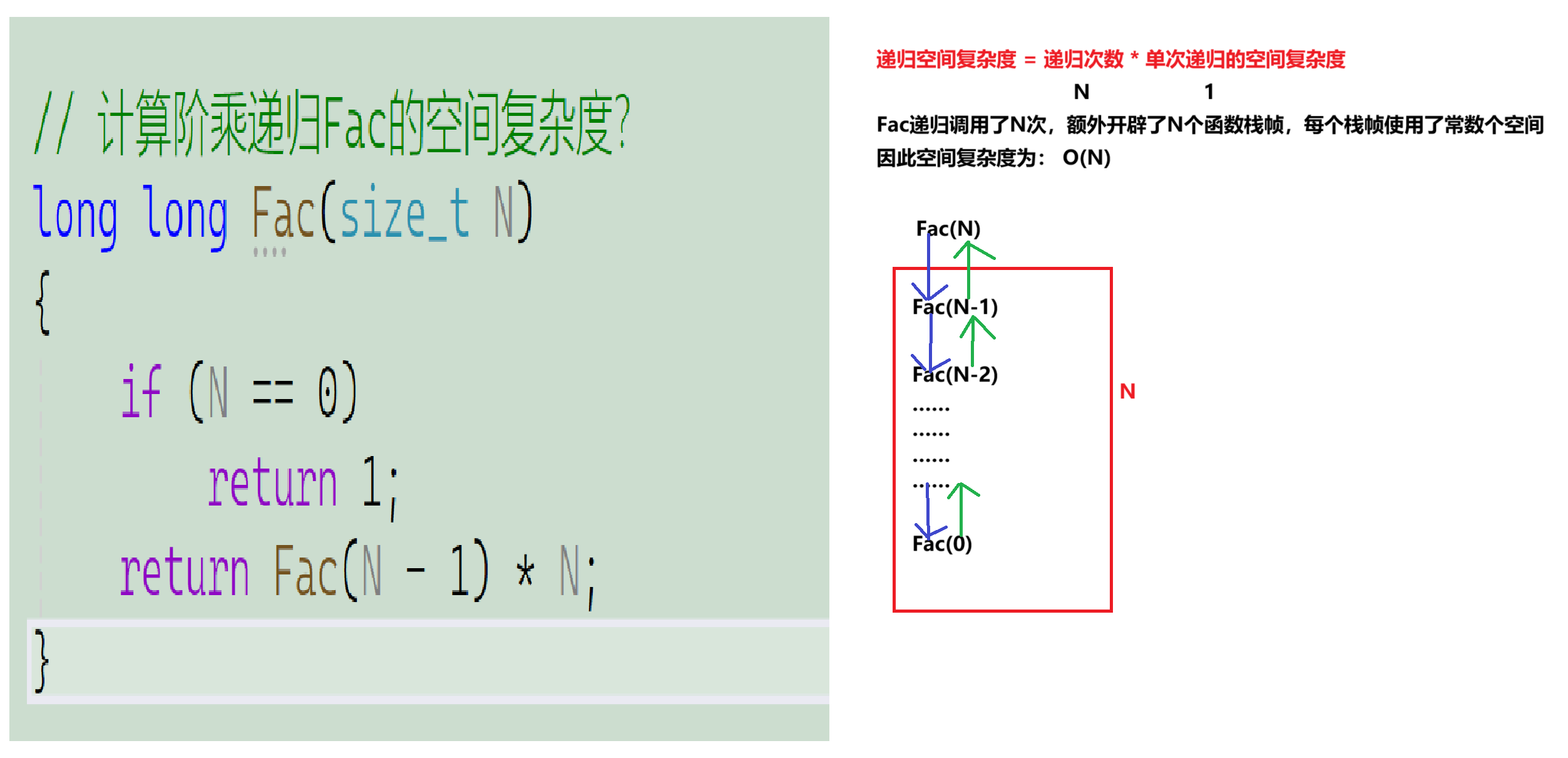 // 计算阶乘递归Fac的空间复杂度?--O(N)