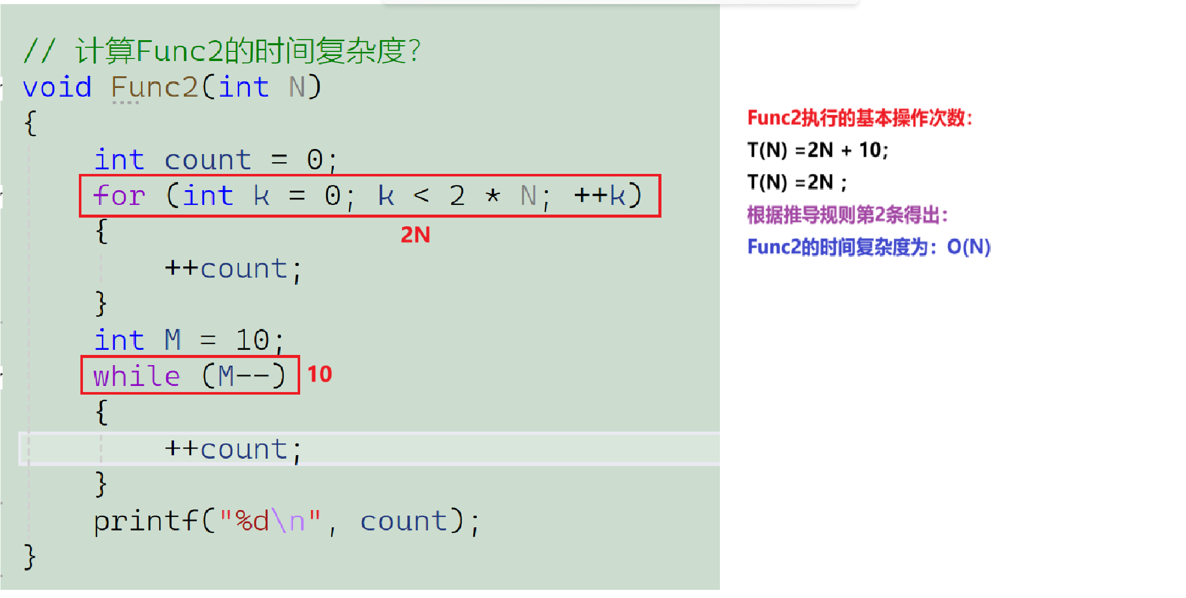 --通过以上方法我们可以得到Func1的时间复杂度为:O(N^2)