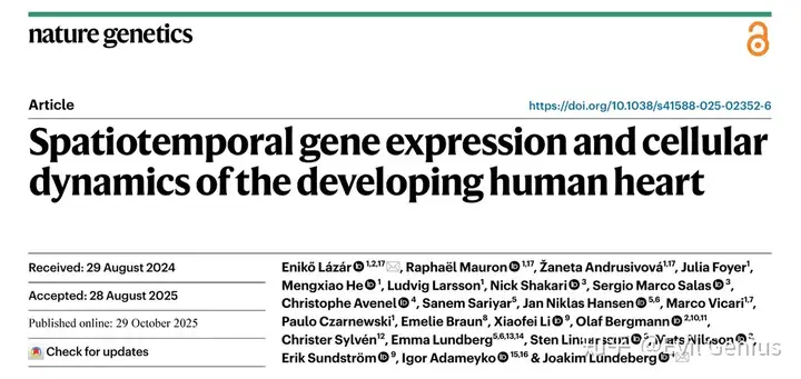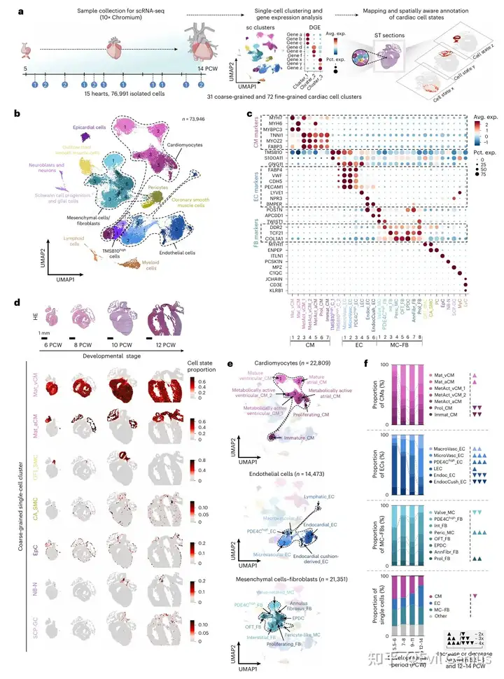 研究对孕5.5至14周的15例人类心脏样本进行了单细胞RNA测序,并整合空间转录组数据,构建了一个高分辨率的时空图谱。