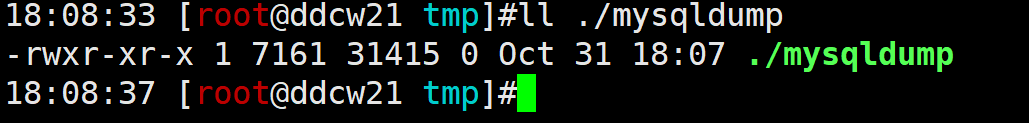 查看历史记录,发现存在一个> ./mysqldump -h127......的命令.... 也就是mysqldump命令被清空了.
