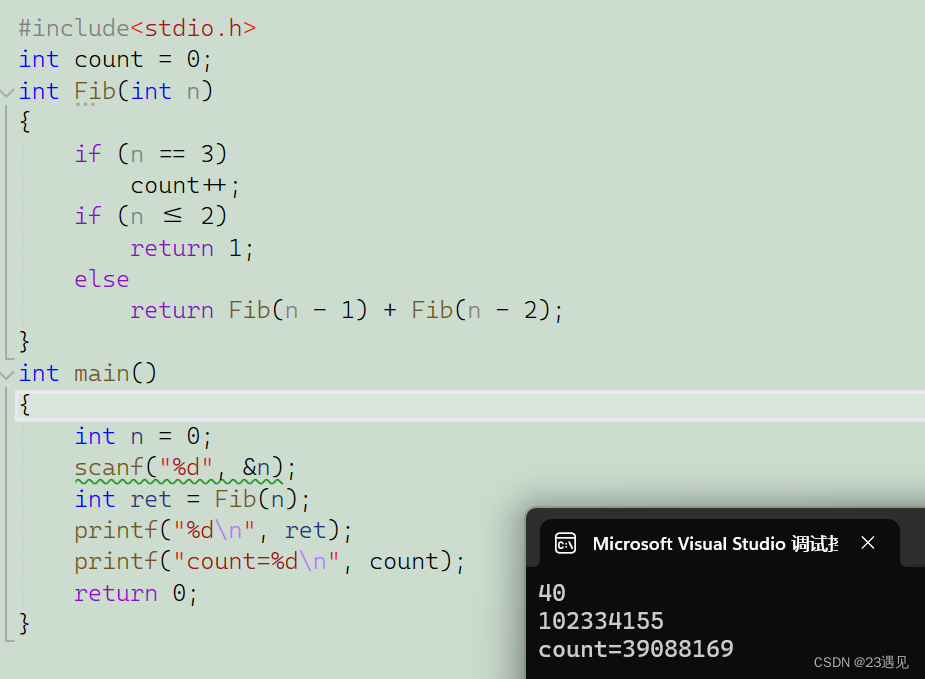 我们可以看到,在计算第40个斐波那契数的时候,使⽤递归⽅式,第3个斐波那契数就被重复计算了39088169次,这些计算是非常冗余的。所以斐波那契数的计算,使用递归是非常不明智的,我们就得想迭代的方式解决。
