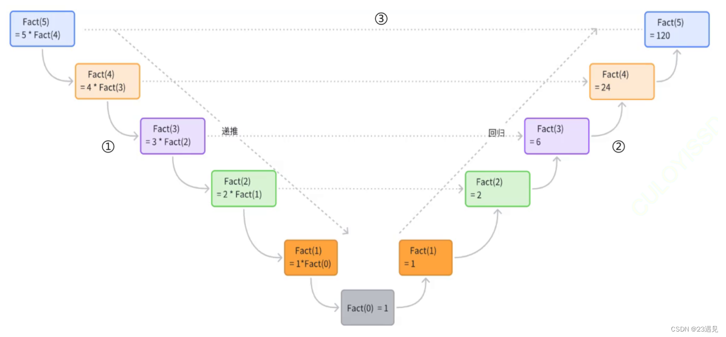①递归存在限制条件,当满足这个限制条件时,递归便不再继续。