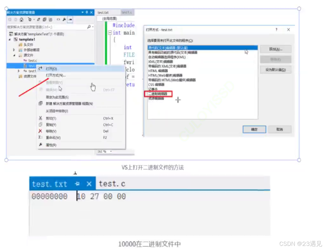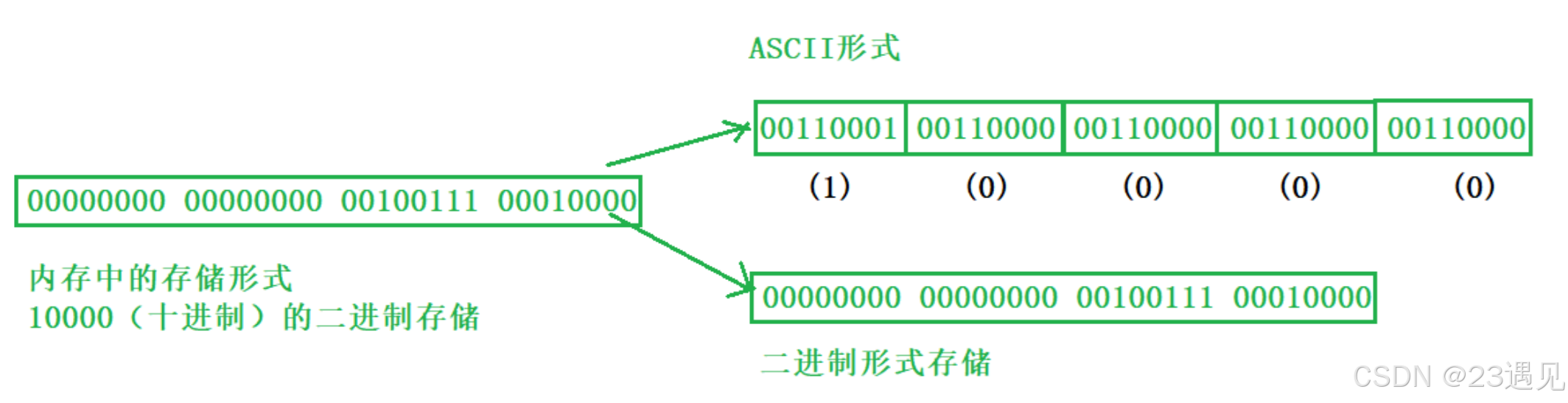 如有整数10000,如果以ASCII码的形式输出到磁盘,则磁盘中占用5个字节(每个字符一个字节,而二进制形式输出,则在磁盘上只占4个字节(VS测试)。