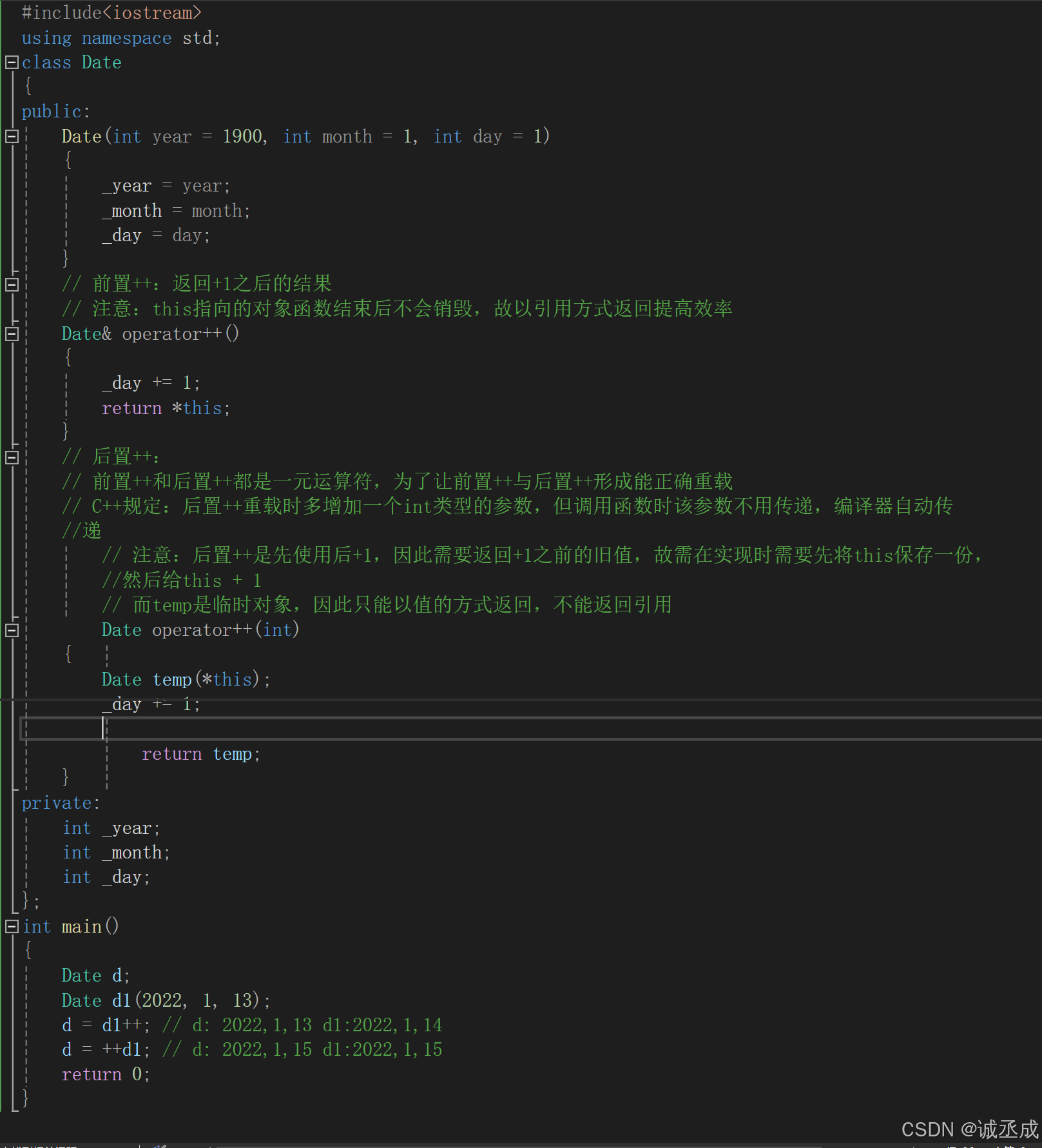 4.作为类成员函数重载时,其形参看起来比操作数数目少1,因为成员函数的第一个参数为隐藏的this