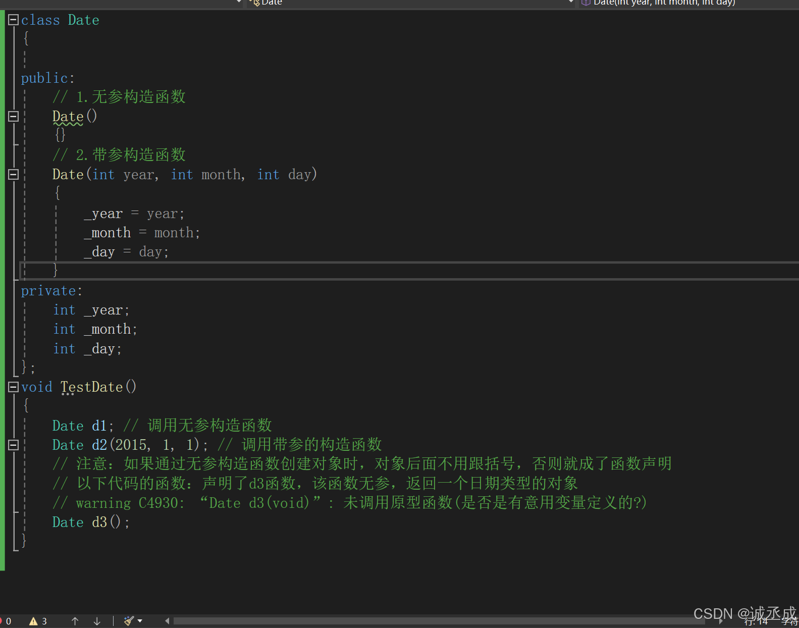 无参的构造函数和全缺省的构造函数都称为默认构造函数,并且默认构造函数只能有一个。