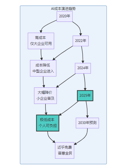 还记得早期的手机吗?那时候拥有一部手机是身份的象征,现在连小学生都有智能手机。AI正在经历同样的"平民化"过程。