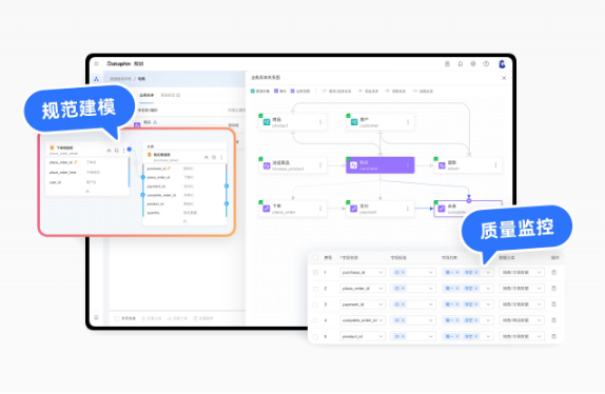 标准统一与质量保障:以阿里巴巴OneData方法论为核心,融合DAMA数据治理理念,通过规范定义、可视建模、自动生成代码等功能,全链路保障数据规范性和一致性,解决企业数据口径不一致痛点。