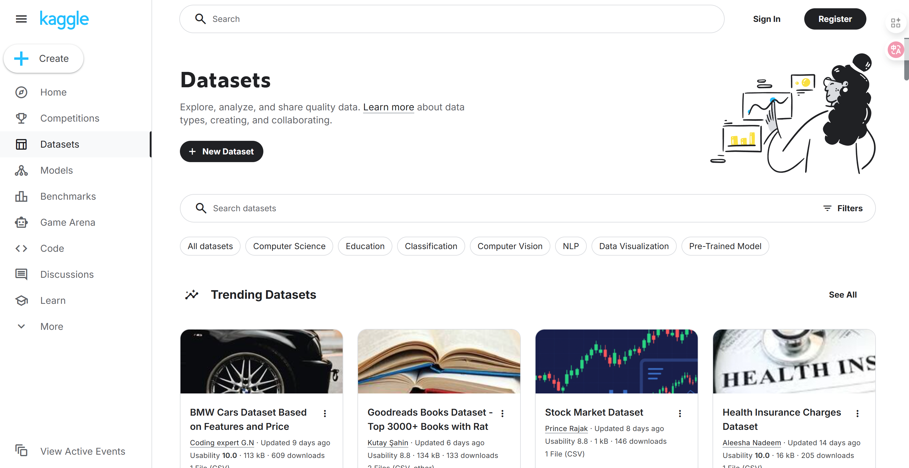 Kaggle平台的独特价值在于其强烈的实践导向。这里的数据集大多源于真实的商业竞赛问题,每个数据集都伴随着丰富的数据分析案例和活跃的社区讨论。对于从业者而言,这不仅是获取数据的渠道,更是学习如何将具体业务问题转化为数据问题的绝佳平台。通过研究这些案例,能够快速提升数据思维和业务理解能力。