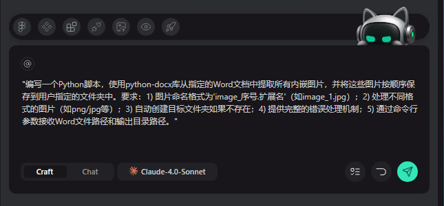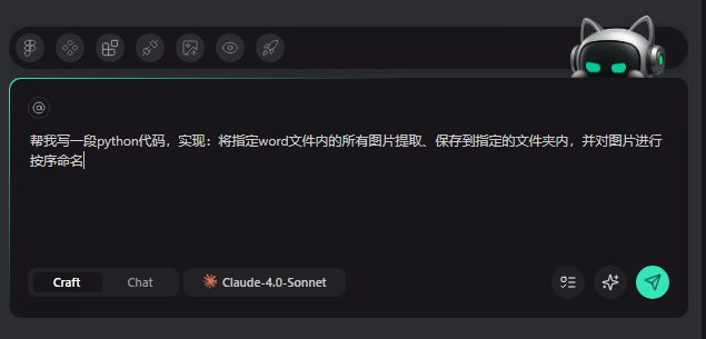 1.输入提示词: 帮我写一段python代码,实现:将指定word文件内的所有图片提取、保存到指定的文件夹内,并对图片进行按序命名 。