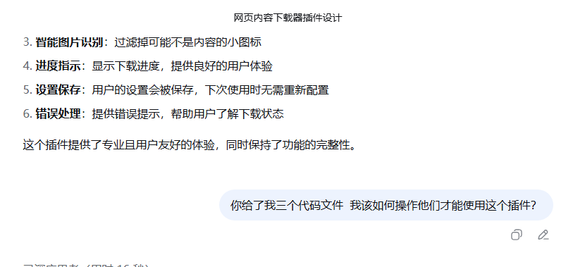 当然,市面上的网页类型很多,所需要下载的内容形式也有很多,我的这个插件可能并不适用所有网站。但任何罕见的需求都值得用AI编程去尝试实现一下,这才是普通人用AI编程的意义。