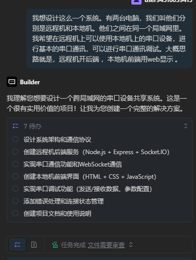 没有以上的知识作为信息基础,就不可能冒出想远程控制串口的灵感,也不会把需求转换成AI可以理解的形式。