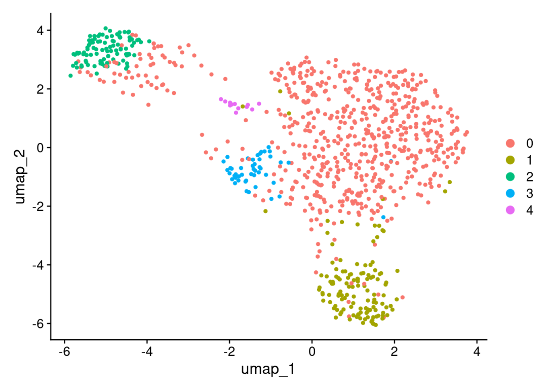 scRNA <- FindClusters(scRNA,resolution = 0.5)