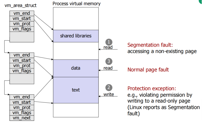 当MMU试图翻译某个虚拟地址时,触发缺页后,会进入到内核的缺页处理程序。