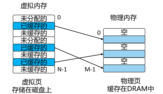 (1)对主存的高速利用:将主存看成是一个存储在磁盘上的地址空间的高速缓存。在主存中,只保存活动区域,并在主存和磁盘之间来回传送数据