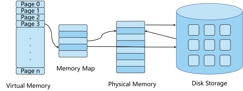 在玩大型游戏时,游戏文件是装载磁盘上的。不是所有的游戏都会加载到主存中,只有当前运行所需部分才会被加载到主存中。