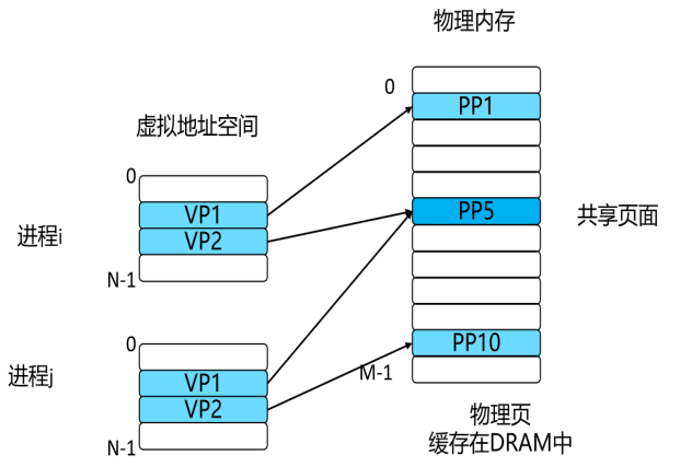 某些区域被映射到所有进程共享的物理页面,比如所有进程共享的内核的代码和全局数据结构。